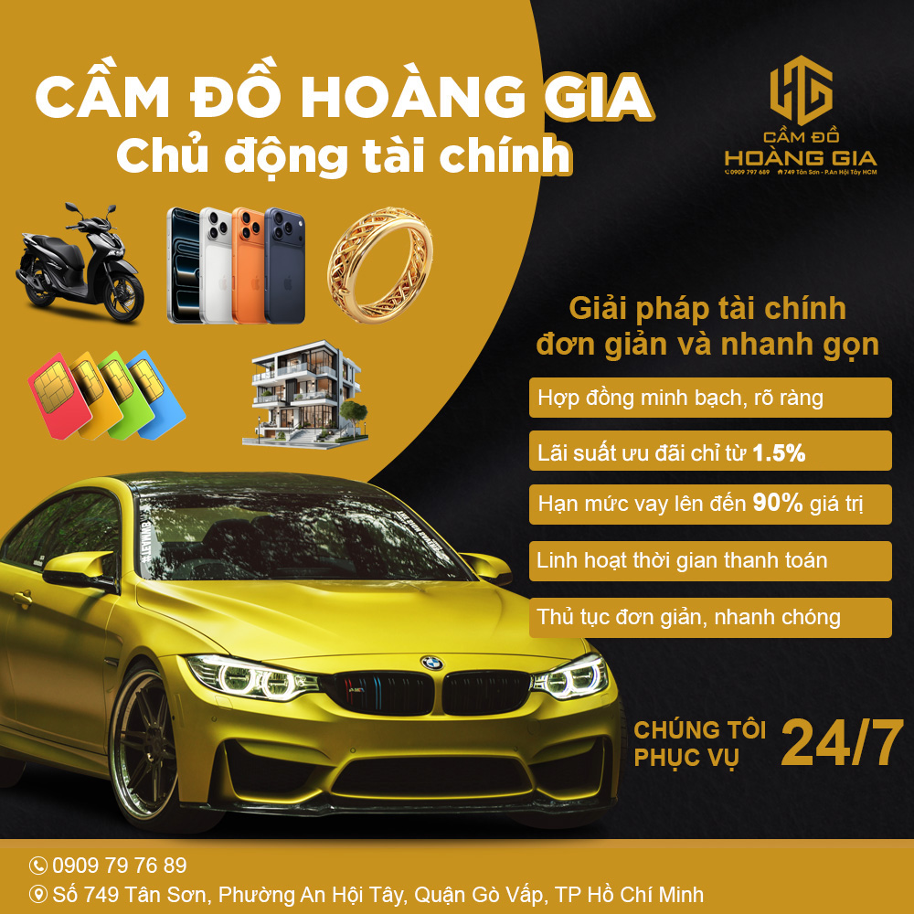 Cầm Đồ Hoàng Gia là đơn vị cung cấp các dịch vụ cầm đồ uy tín như cầm ô tô, cầm sổ đỏ, cầm xe máy, cầm laptop,…. uy tín tại TP.HCM.